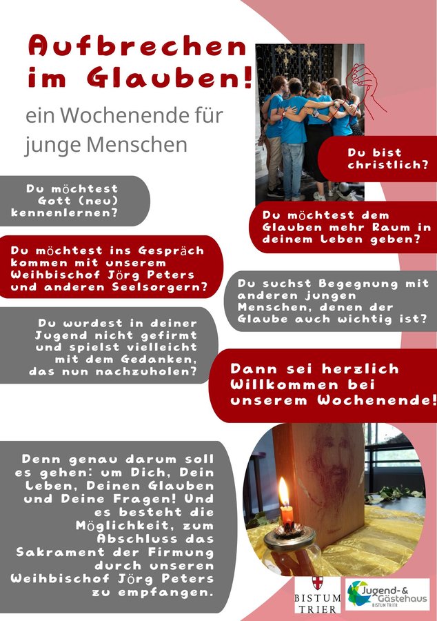 Und es besteht die Möglichkeit, zum Abschluss das Sakrament der Firmung durch unseren Weihbischof Jörg Peters zu empfangen.