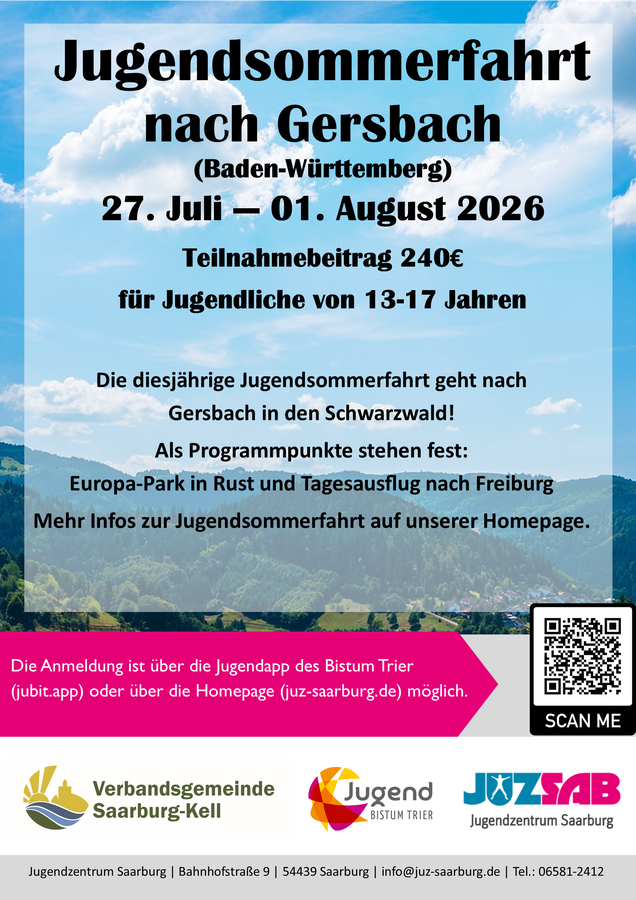 Unsere diesjährige Jugendsommerfahrt geht nach Gersbach (südlich von Freiburg) im Schwarzwald.